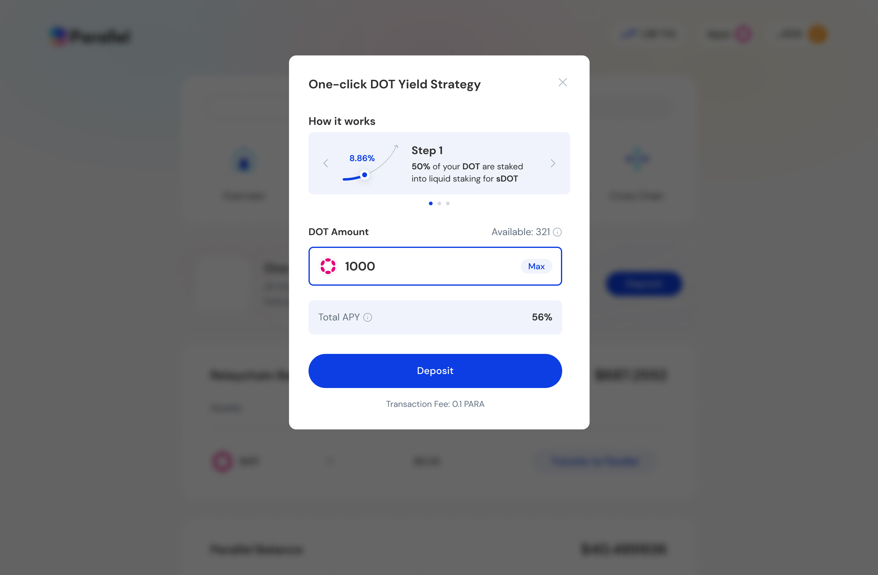 For users are not familiar with DeFi or don't want to manage the details, we've designed a one-click experience to help users maximize their yield on DOT assets. This product makes use of our portfolio of products on the backend, while drastically simplifying the user experience for everyone.